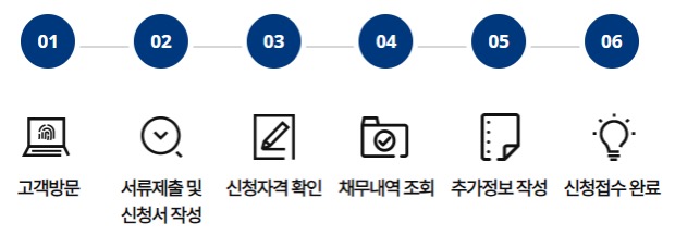 새출발기금 누리집과 지사 방문을 통해 채무조정 신청을 할 수 있습니다.