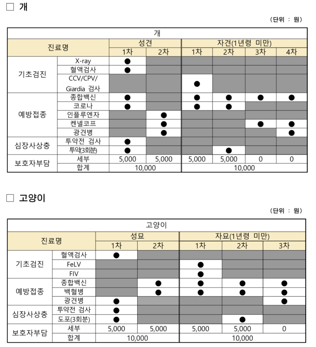 ‘필수진료’ 항목은 30만 원 상당으로 그중 10만원은 동물병원 재능기부, 나머지 20만 원은 서울시와 자치구가 지원한다고 합니다.