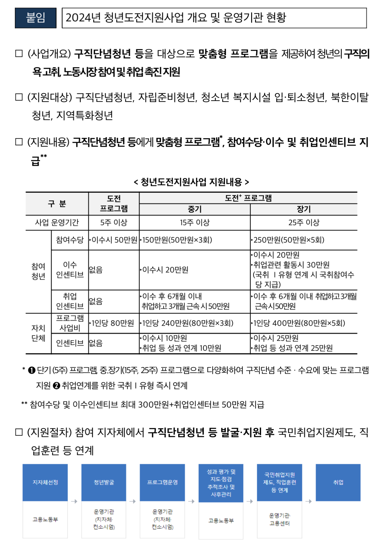 * 참여대상: 구직단념 청년 ▴자립준비 청년 ▴청소년 복지시설 입·퇴소 청년 ▴북한이탈 청년 등
